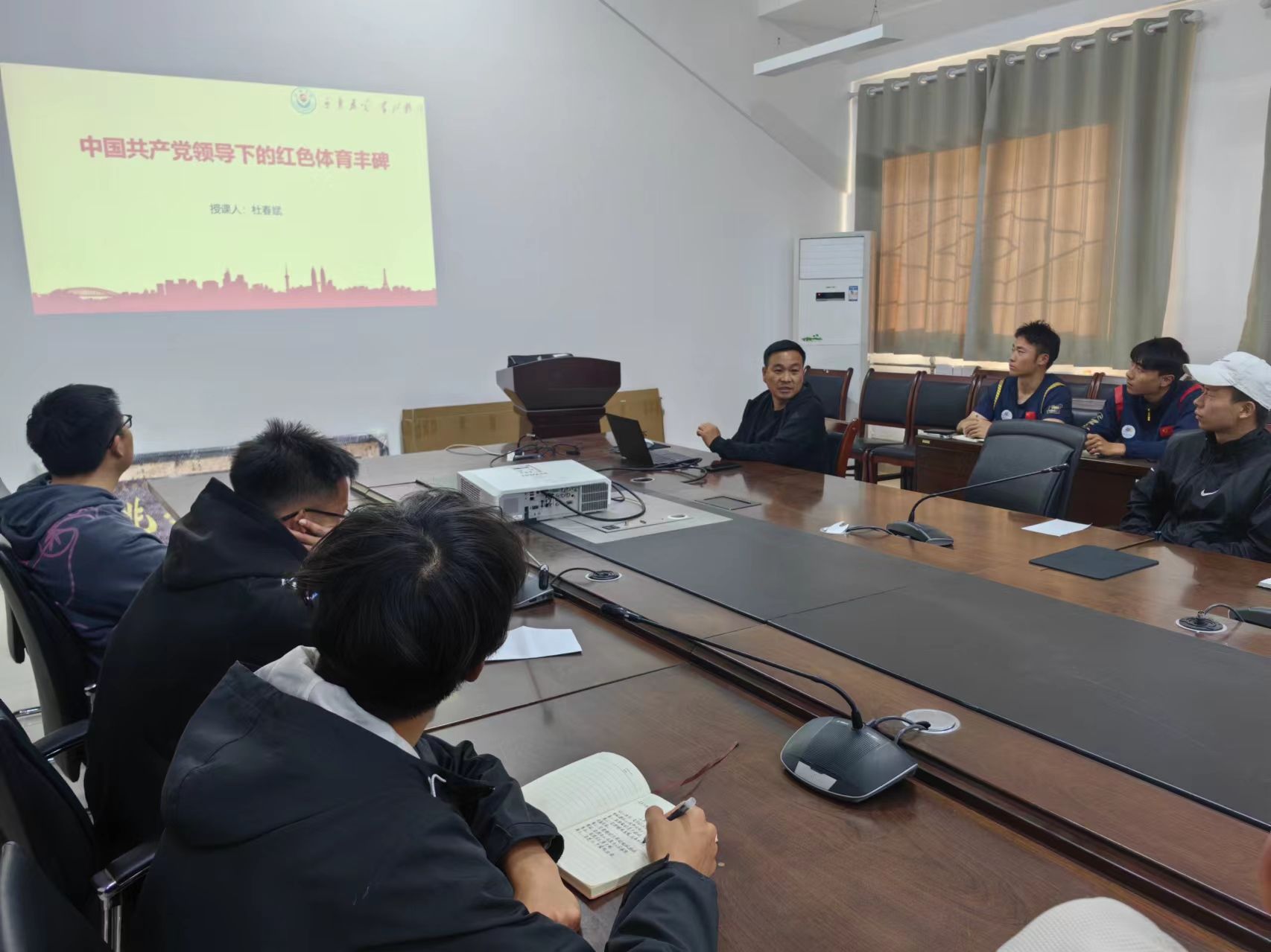 红育体育为中国革命的胜利立下了不可磨灭的功勋,4月24日下午,杜春斌老师为全体学员讲授了《中国共产党领导下的红色体育》党课。