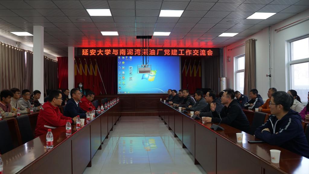 随后,全体人员共赴南泥湾采油厂进行考察,并与南泥湾采油厂召开党建工作交流座谈会。座谈会由南泥湾采油厂副厂长杨晋荣主持,会上听取了采油厂党办负责人介绍了南泥湾采油厂党建工作经验和做法,观看了南泥湾采油厂党建工作视频宣传教育片,公司党委书记兰鸿涛、机关党委第六支部书记王文东、文公司党委书记党子奇分别介绍了各自的党建工作,双方就校企合作、人才培养、党建与业务合作等进行了深入的探讨,并达成初步合作意向。