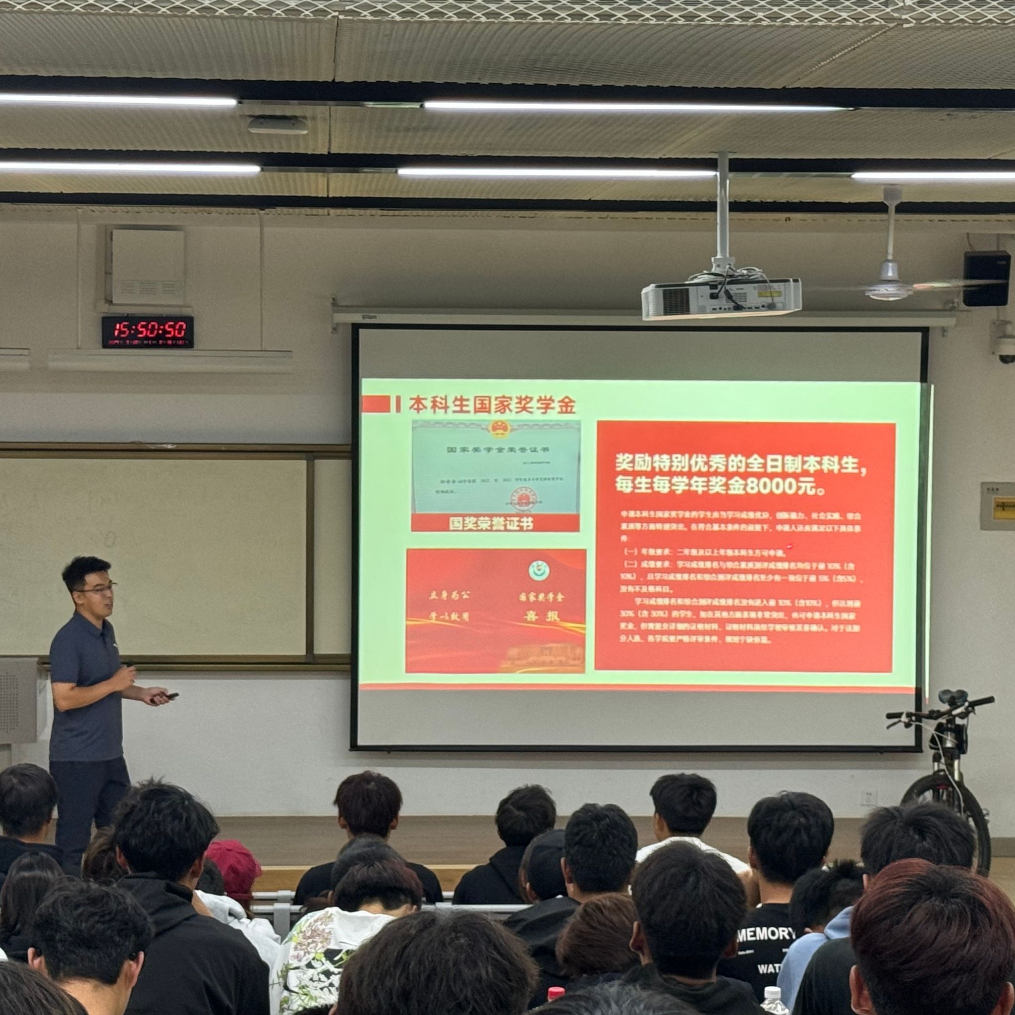 二是学工干部宣讲政策,及时为新生解答疑难困惑。班主任马滔老师结合专业特点对体育类国家职业资格证书认定政策;组织员李才才对发展党员工作流程进行了讲解;团委书记蔡佳介绍了老员工应征入伍政策和共青团工作;辅导员王海泉对奖助学金政策和综合测评办法进行了解读。