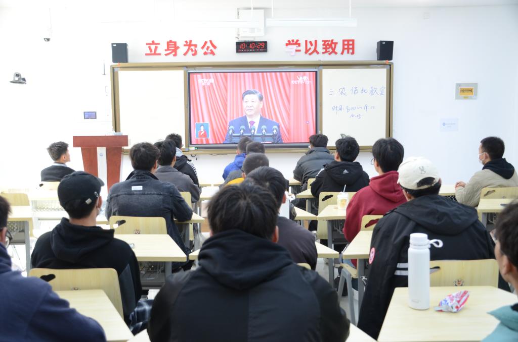 公司党委组织班子成员、各支部书记、辅导员在公司党员活动室集中收看大会,其余教职工在家自行观看,各班级在教学楼进行收看,共设19个分会场,500余人参加。与会成员结合报告内容进行了学习感悟分享,师生纷纷表示新时代中国壮阔行进的每一步,都在创造奇迹、书写历史,我们要从伟大成就中激发奋进的力量,勇毅前行、团结奋斗,在时代发展的潮流中不断创造新的更大成就和辉煌。