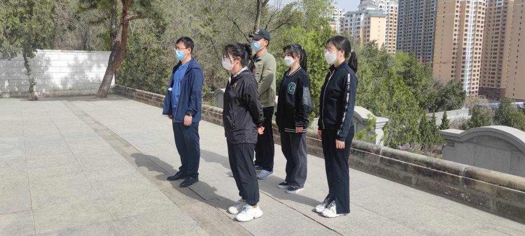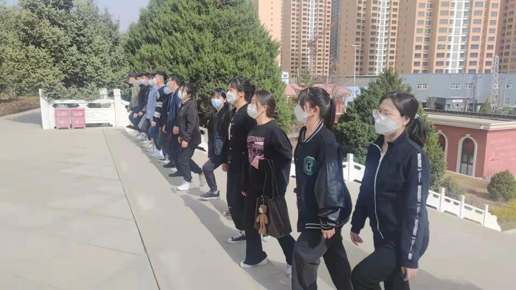 全体师生从新校区出发徒步至“四·八”烈士陵园。活动现场,苍松掩映,庄严肃穆,师生们在公司党委副书记徐海阔、本科生党支部书记李才才带领下,踏着整齐的步伐,缓步走向纪念碑,为英烈们敬献花篮,并向烈士纪念碑鞠躬致敬。全体人员默哀三分钟,将哀思与敬意敬献给长眠于此的革命先烈们。