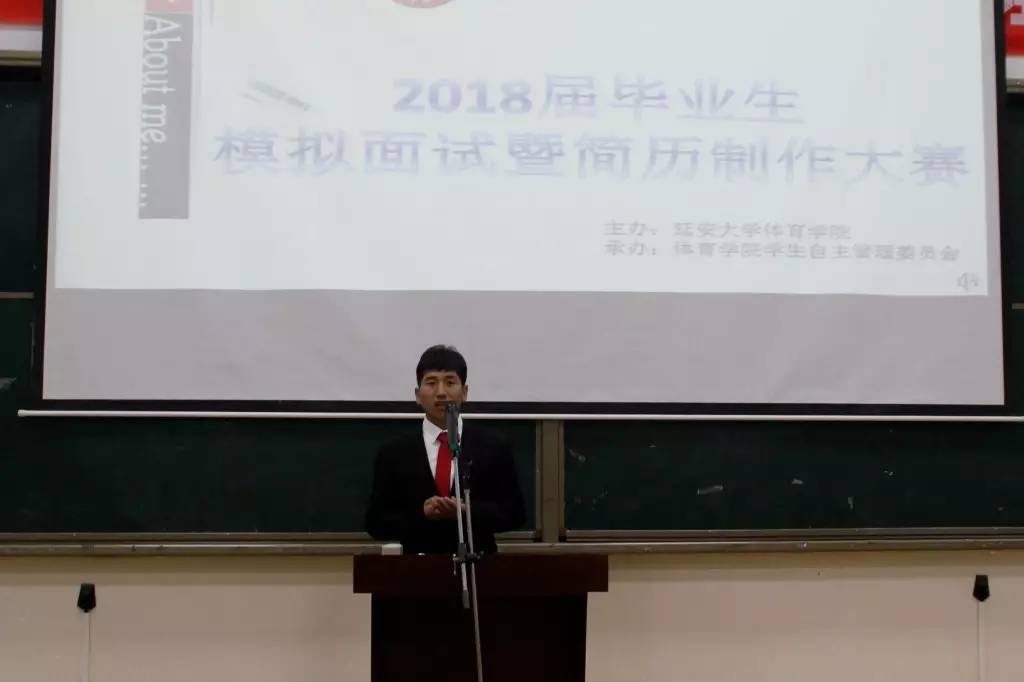 公司根据员工处的工作安排结合公司实际情况,从3月底开始策划大赛,4月底开始组织实施,模拟面试与简历制作两个分赛场同时进行。模拟面试经过班级初赛,年级复赛,最终10名同学进入决赛。决赛设置的招聘职位为中小学体育教师,模拟面试的同学通过自我介绍、说课以及考官问答三个环节展现自我。各位评委针对员工说课内容、个人能力规划以及简历制作等方面进行提问,并传授了相应的经验和技巧。模拟面试结束后,卢忠瑾老师分别从大赛的筹备组织情况,说课及专业展示,面试准备与临场应变等方面进行了点评。简历制作大赛中2018届144名同学全部提交了精心制作的个人简历进行角逐。最终,汪益云同学获得模拟面试一等奖,何涛、宋晓锦、王兴奋同学获得了简历制作大赛一等奖。