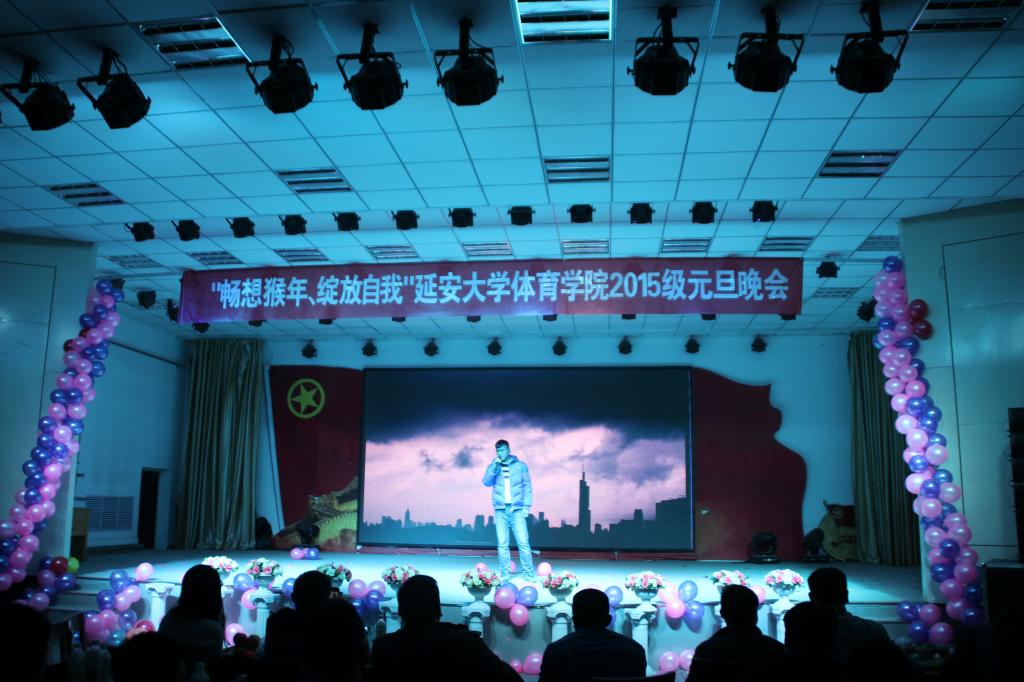 晚会伊始,纪录15级同学入学后点点滴滴的小视频让同学们回顾了半年来的细节,感受了自己的成长。紧接着的B-BOX用强有力的节奏撞击点燃了同学们的热情,踩着B-BOX节奏而来的《街舞少年》则用青春与活力燃爆全场。同样的,舞蹈《DIE DUANG》和《潇洒小姐》也彰显了体院学子的青春洋溢与活力四射,不断的把联欢会的气氛推向高潮。歌曲《那些花儿》、《红玫瑰》、《斑马斑马》、《阴天快乐》、《怎样》、《Nothing’s gonna change my love for you》、《朋友的酒》用清新动人的旋律征服了同学们的耳朵,引来了阵阵喝彩。而小品《大话西游之考研》、《公交车上》和双簧《跳水》则负责为同学们抖包袱、添笑料,欢声笑语不绝于耳。两轮游戏环节则分别由辅导员和学长学姐带队比拼,同学们积极参与,热闹非常。节目组还贴心的为大家准备了瓜子花生,水果饮料,联欢会在经典的《难忘今宵》的旋律下圆满结束。