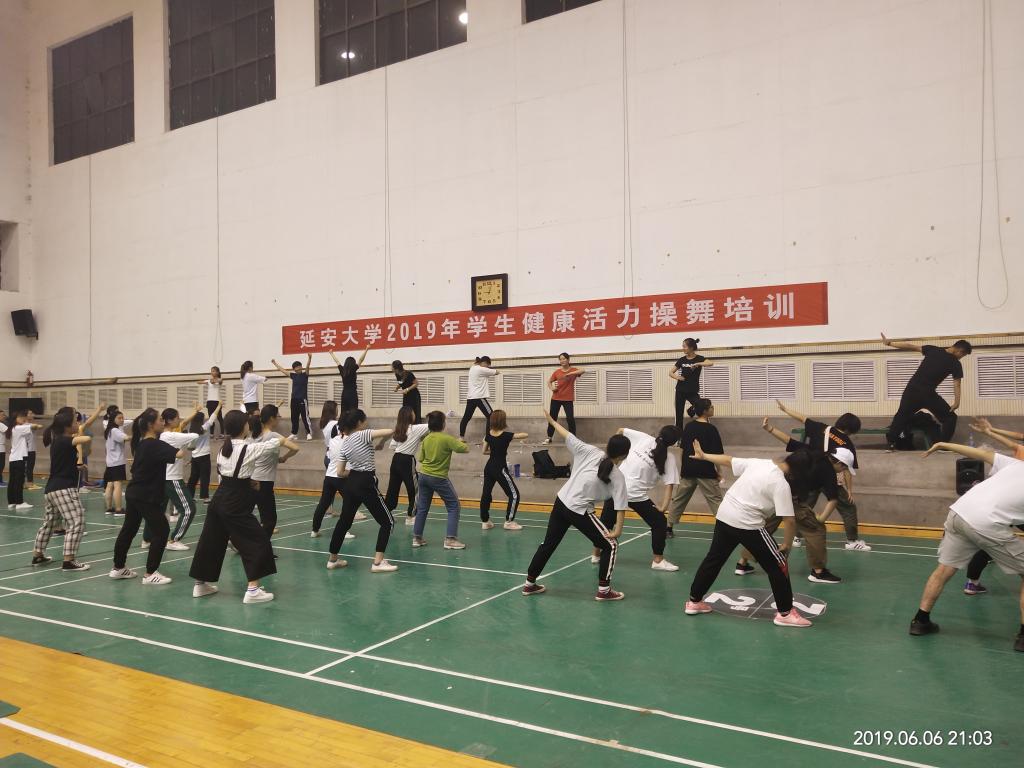 为积极准备2019年员工健康活力大赛,普及啦啦操、街舞、爵士、广场舞项目,提高员工竞技水平,由校体育工作委员会主办,bevictor伟德承办,bevictor伟德体操教研室协办的2019年伟德官网bv员工健康活力操舞培训于2019年6月4日至6日在校本部体育馆内举行。来自13个院系的160余名员工参加此次培训,培训讲师由校健美操代表队教练张智颖、宗延伟以及高鹏三位老师共同担任。