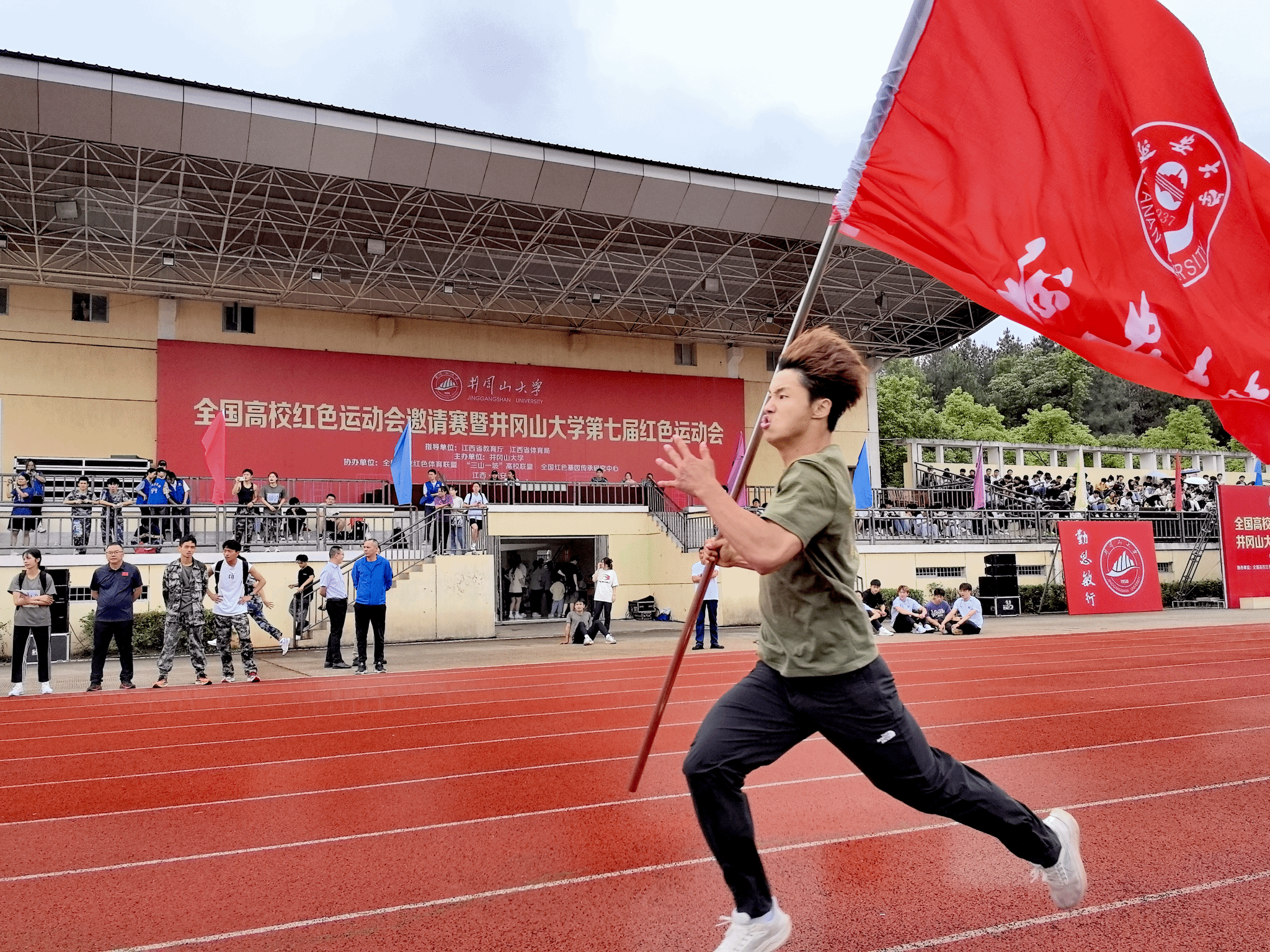 江西省体育局副局长金紫薇、江西省教育厅体卫艺处处长陈蔚、全国高校红色体育联盟秘书长张建、全国红色基因传承研究中心研究员朱国兵以及受邀的各公司代表出席了开幕式。遵义师范公司党委副书记、董事长刘肇军和井冈山大学党委书记胡春晓分别致开幕辞,公司体教2022级3班员工张凯硕代表全体运动员宣誓。来自赣南师范大学、韩山师范公司、江西理工大学、江西农业大学、江西师范大学、九江公司、临沂大学、南昌大学、南昌工程公司、萍乡公司、西安电子科技大学、伟德官网bv、中国民用航空飞行公司、遵义师范公司等高校共计1000余名员工参加了本次比赛。