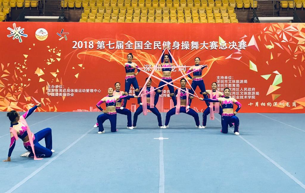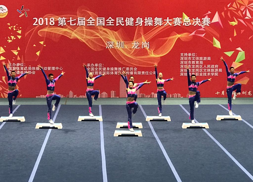 由国家体育总局、中国健美操协会主办的2018年第七届全国全民健身操舞大赛总决赛于10月22日至28日,首次在深圳举行。是目前我国健美操赛事中比赛规模最大的赛事,来自全国30多个省市6200余名运动员对竞技健美操、有氧健身操、时尚健身课程、广场健身舞、街舞、民族健身操舞、大众体操共7个项目进行角逐。公司健美操队在今年年初就开始准备此项赛事,在暑假期间就开始刻苦训练、精心编排,经过二个多月的赛前集训,在领队郑兵、教练宗延伟、张智颖的带领下参加的2016全国踏板健身操成人套、2016《民族健身操规定动作》之藏族、2017全国规定套路校园踏板操、街舞Streetjazz推广套路(2015),4个项目获得一等奖,2016全国阳光校园健身操皮筋操普及套、街舞Hiphop推广套路(2015)、2016全国阳光校园健身操皮筋操表演套,三个项目获得特等奖。创历年来参加此项赛事最好成绩,教练员宗延伟和张智颖因成绩突出连续三年被评为“优秀教练员”。