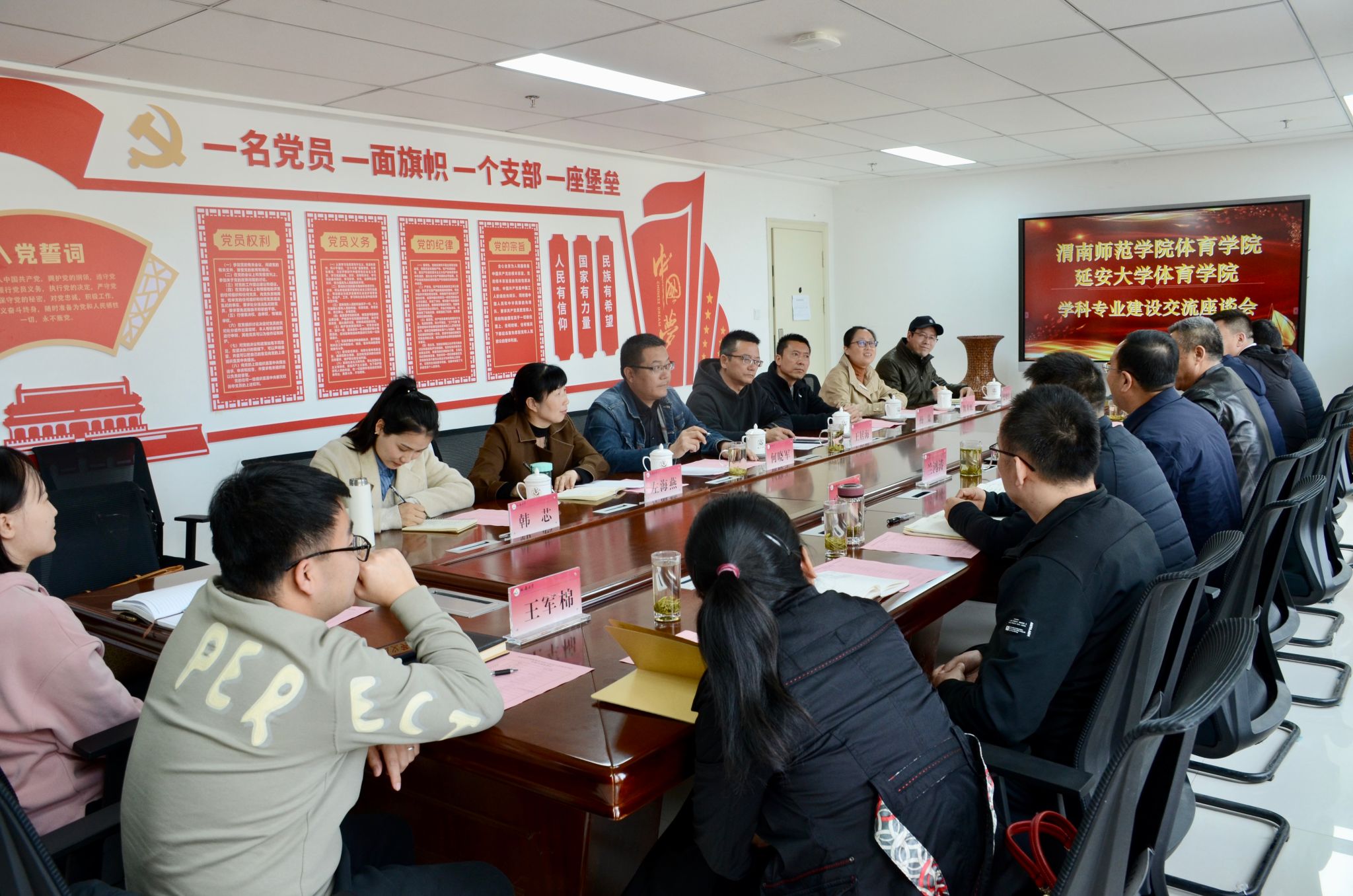 3月15日下午,bevictor伟德与渭南师范公司bevictor伟德在公司会议室举行了学科专业建设交流座谈会,渭南师范公司bevictor伟德经理王居海,副经理杨枭,理论教研室左海燕,工会主席何晓军,实验室主任陈彩虹,专业建设负责人史晓伟,基础教研室主任韩芯,公司党委书记兰鸿涛,经理宗有智,副经理宗延伟、薛亚东、张应龙,体育教育系主任杜春斌,运动康复系主任杨磊,理论教研室主任王军棉等参加了会议,会议由经理宗有智主持。