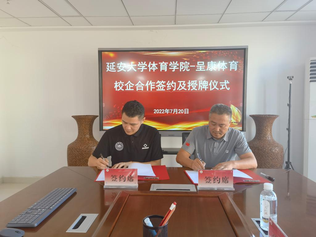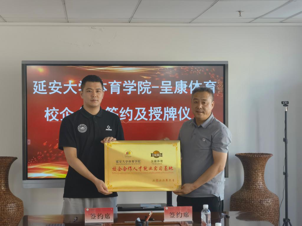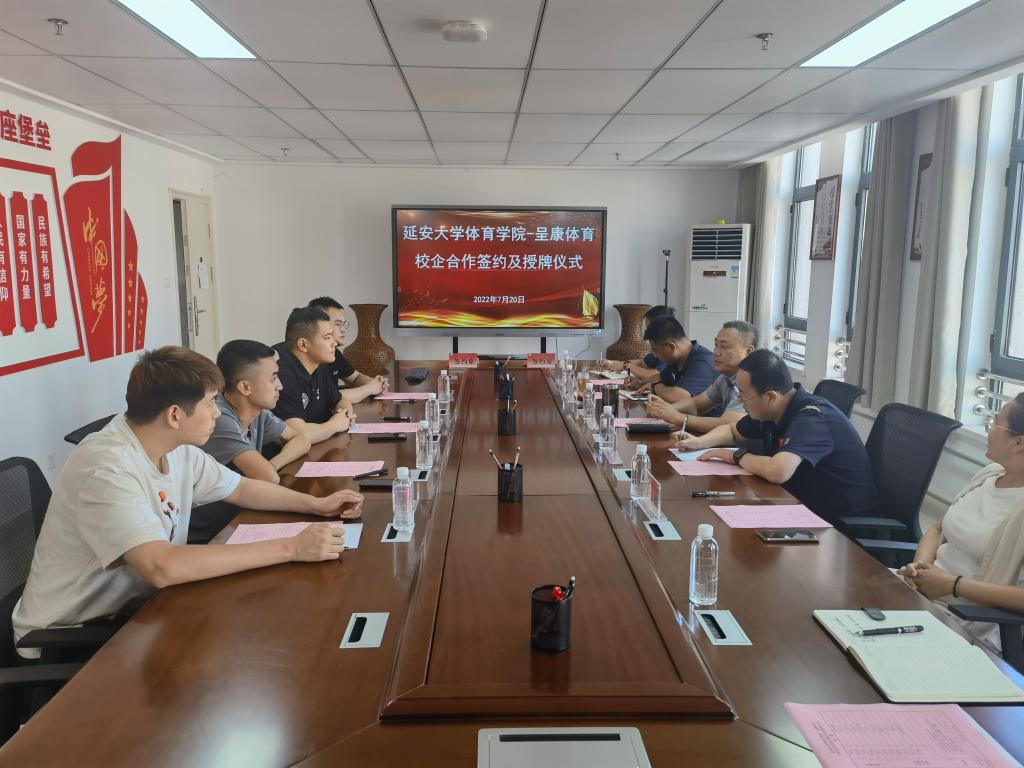 7月20日下午,呈康体育与bevictor伟德在公司党员活动室举行校企合作协议签约及老员工实习就业基地授牌仪式,呈康体育西安分公司、西安冬俊体育发展有限公司总经理董茂伟、区域经理邓磊、区域经理刘远航、人力资源经理严锦杰,bevictor伟德经理宗有智、党委书记兰鸿涛、副经理张应龙、理论教研室主任王军棉参加了签约仪式,签约仪式由党委副书记徐海阔主持。