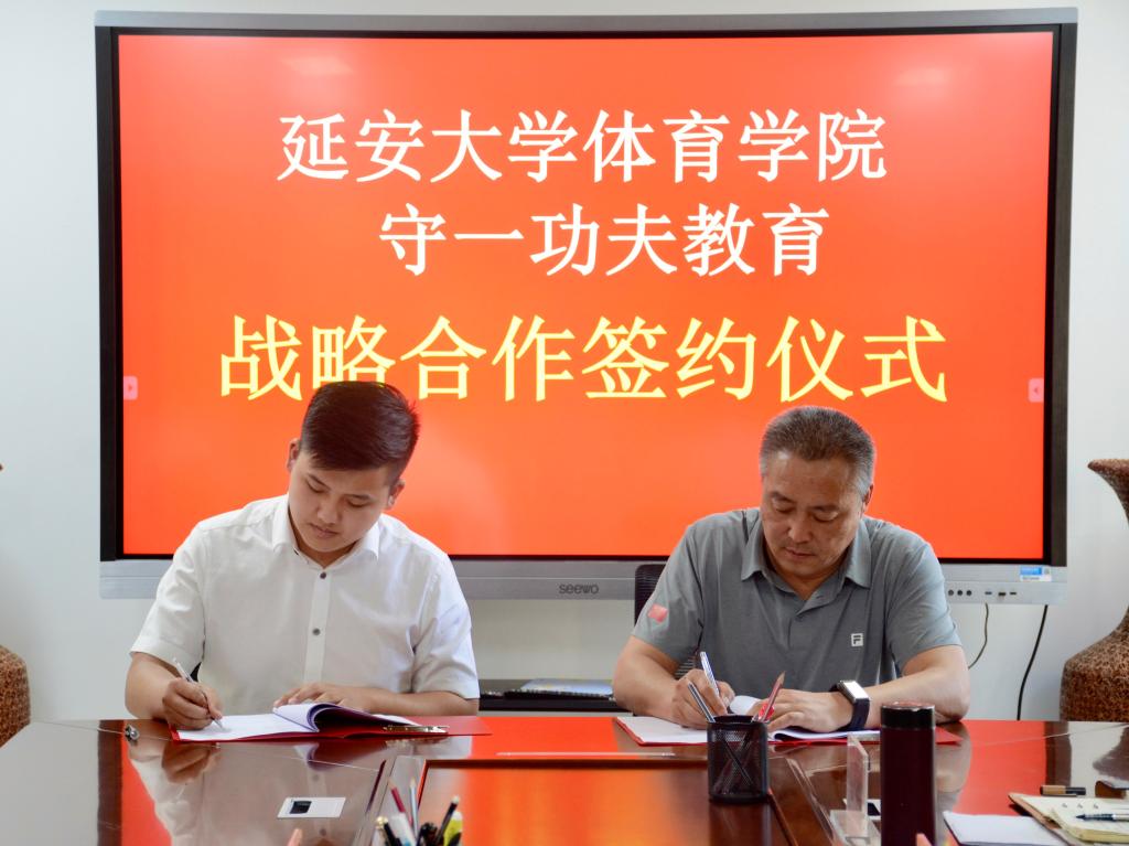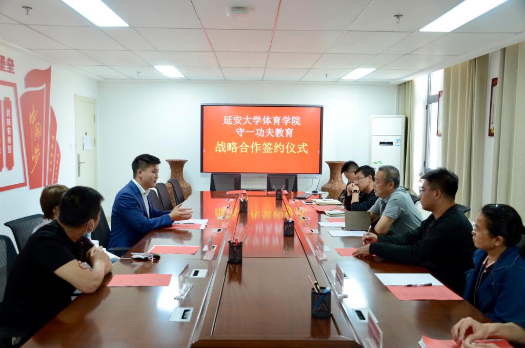 4月25日下午,守一功夫教育与bevictor伟德在公司党员活动室举行战略合作战略合作签约仪式,守一功夫教育总经理孙鑫龙、延安校区负责人承保政、榆林校区负责人王世阳,公司党委副书记徐海阔,副经理薛亚东、张应龙,球类教研室主任姜小峰、武术教研室主任马永军、理论教研室主任王军棉参加了签约仪式,签约仪式由经理宗有智主持。