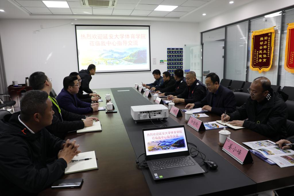 随后,双方在延安新投文化旅游发展有限公司会议室召开了座谈会,座谈会由崔凯主持。崔凯分别从全民健身运动中心的建设规模,建设周期,建设资金,运营现状,公司组织机构建设等方面做了详细的介绍,并结合运营现状和措施做法做了经验交流。宗有智谈了本次访问座谈的目的:是为了更好的达成校企合作,资源共享,同时也需要和全民运动中心“取经”,更好的建设伟德官网bv体育场馆,早日实现伟德官网bv场馆的顺利运营;早日达成双方校企合作、实现共享共赢。
