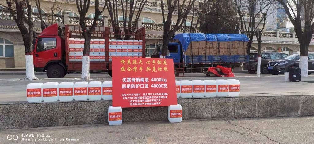 此次双方共为公司捐赠消毒液4000kg、医用外科口罩40000只,总价值10余万元。