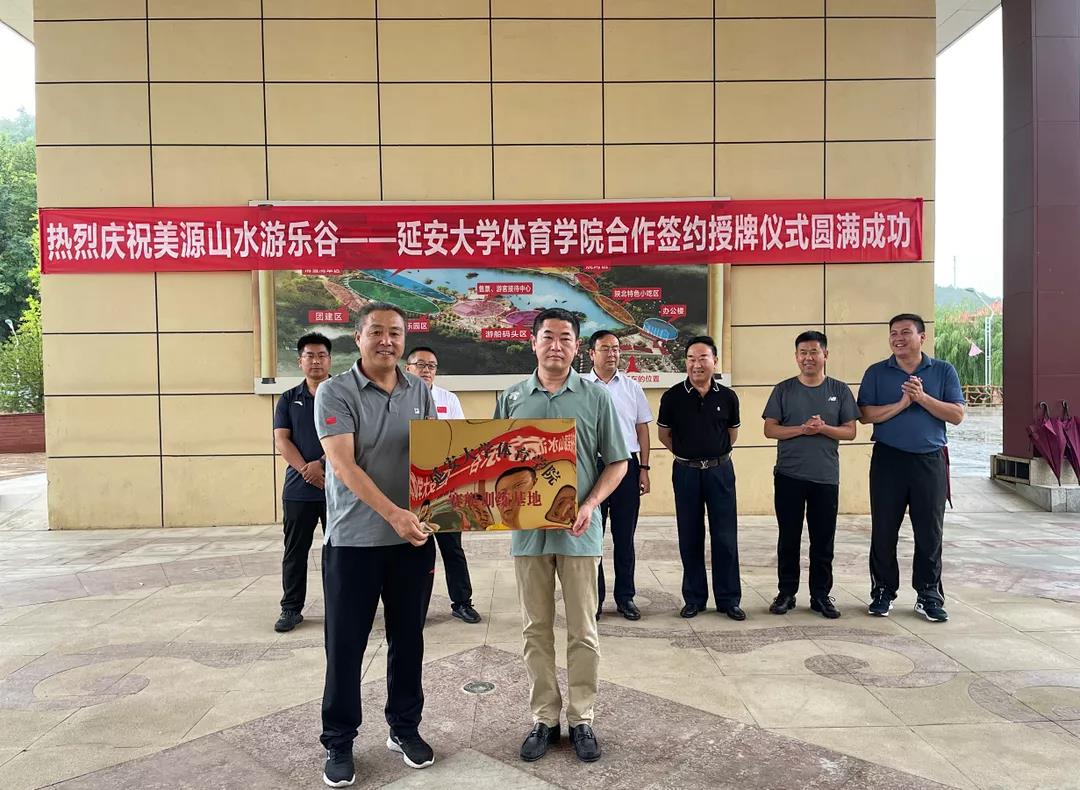 8月19日上午,为深化校企合作、促进文旅融合,探索体育专业教学与旅游发展新模式,bevictor伟德与延安美高金源商贸有限公司在美源山水游乐谷举行了合作签约授牌仪式。bevictor伟德经理宗有智、党委书记兰鸿涛、党委副书记徐海阔、副经理宗延伟、薛亚东、张应龙,延安美高金源商贸有限公司董事长白宏明、总经理白海斌及相关部门负责人参加了本次活动。
