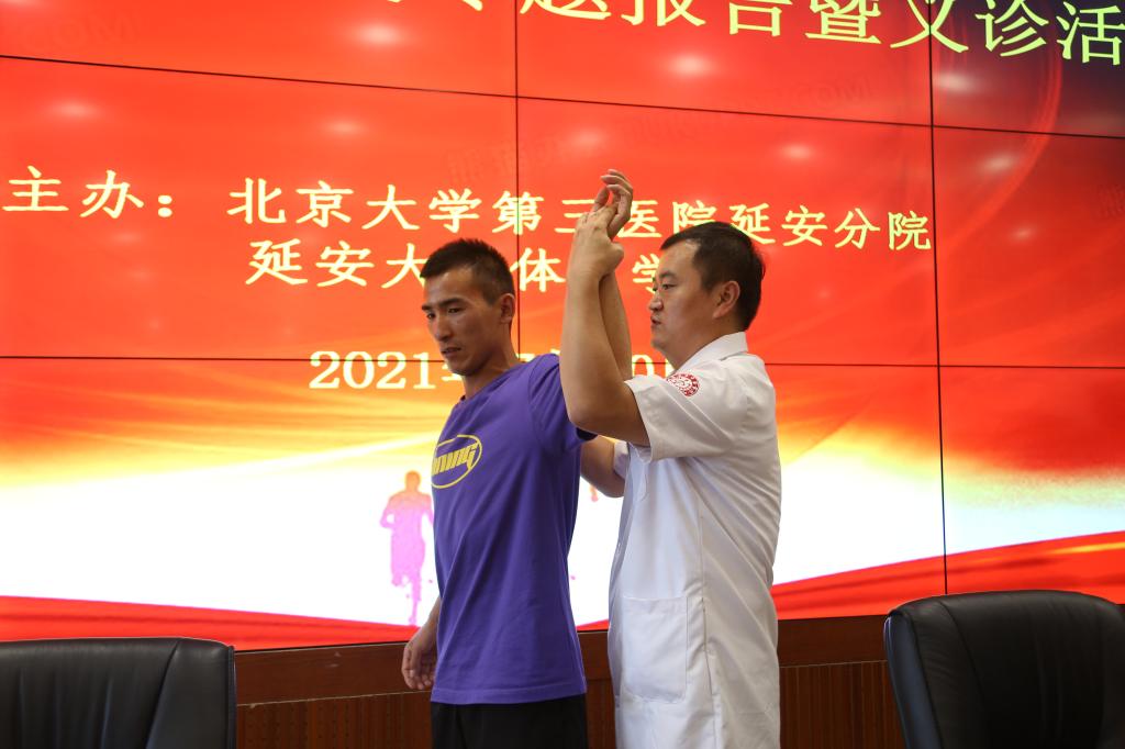 兰鸿涛书记在总结讲话中指出,举办此次活动主要目的是通过身体运动功能的测试与运动康复指导,引导大家科学锻炼、养成健康的良好习惯,通过北京大学第三医院延安分院运动医学科的专家义诊活动,解决患者骨关节相关疾病的困扰。在活动中,各位专家结合自身研究和临床实践经验,从医学的专业角度讲解了“如何科学运动、如何应对运动损伤、如何进行康复训练”有关知识,对于我们今后开展科学运动、科学训练具有很强的指导意义。