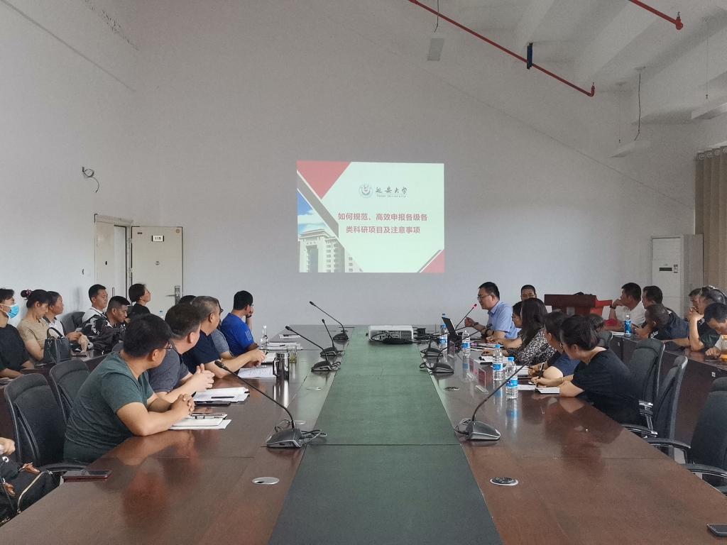 刘宏宇围绕《如何规范、高效申报各级各类科研项目及注意事项》专题,就科研项目分类、申报时限、申报注意事项等方面,紧扣与教师息息相关的科研问题进行了细致讲解与说明。