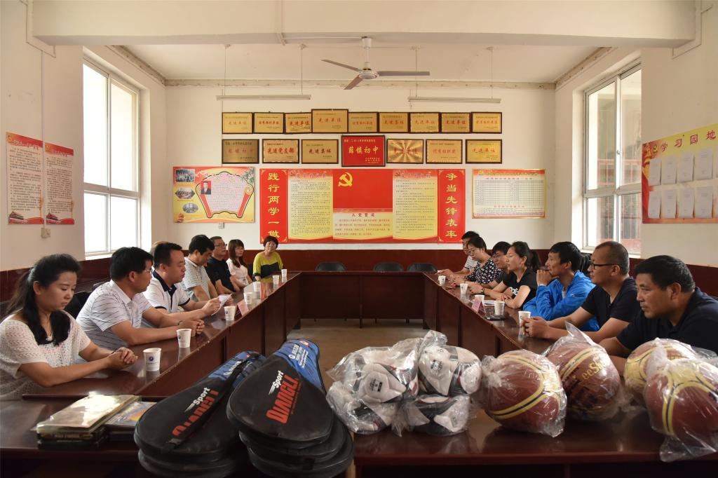 充分交流后,梁艳书记代表公司表示为响应党中央“精准扶贫”的号召,加强党的建设,公司通过优秀员工联系到薛镇初级中学对于双方都是一次创新发展。为进一步加强合作,实现帮扶效果,公司将在体育用品、技能培训、人才交流、活动开展上大力提供支持。同时希望基层中小学能够为公司的教育培养工作提供宝贵的反馈意见。薛镇初级中学体育组组长王双霞老师就乡村中小学体育教师应加强的结合实际情况组织教学能力等方面阐述了工作三十来年积累的教学经验。