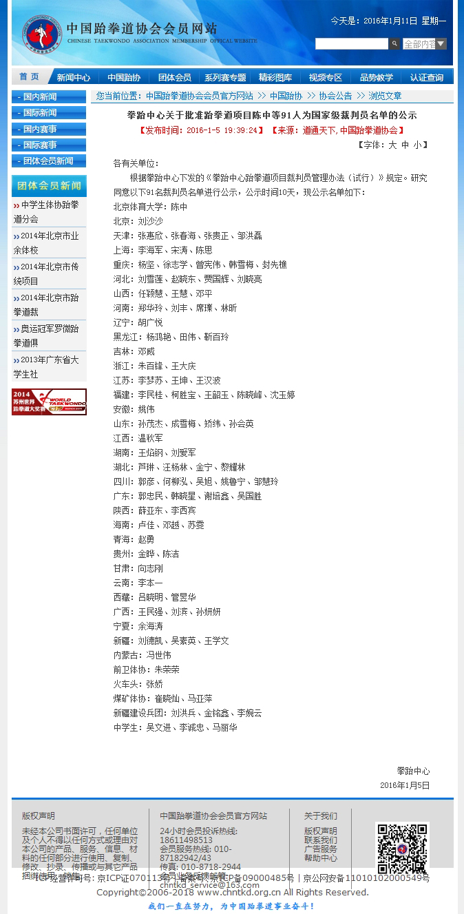 2015年12月19日至21日国家体育总局拳跆中心、中国跆拳道协会主办的2015年度跆拳道项目晋升国家级裁判员学习班在广东省中山大学(东校区)举行。经陕西省跆拳道协会推荐,公司教师薛亚东通过裁判规则理论、裁判员手势、口令、执裁实践、身体机能测试、跆拳道基本技术考核、英语口语考核等五个项目的考核,取得跆拳道国家级裁判员资格。