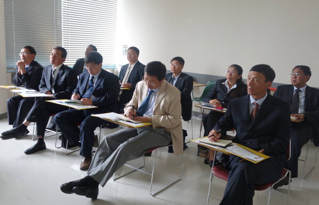 在旧金山州立大学,培训团先后听取了包括美方大学董事长、院系主任(经理 )、资深研究人员所作的《 美国高等教育:辉煌与挑战 》、《 美国高等教育政策概览 》、《高等教育政策研究与案例分析》、《 教学与科研关系研究 》、《教师发展》、《教师行为评估》、《团队队伍建设》、《院系管理实务》、《教师参与公司管理》和《教师聘任、晋职与解聘》等10场专题报告;实地考察了加州理工大学、南加州大学、加州大学洛杉矶分校、旧金山州立大学、伯克利大学、斯坦福大学、圣塔克莱拉大学、哥伦比亚大学、马里兰大学、普林斯顿大学等10所高校的体育场馆、实验室、图书馆及其他办学设施,并与部分高校教学科研人员、管理人员、员工就双方感兴趣话题进行了座谈交流。参访了位于硅谷的苹果公司、Intel公司、Google公司等研发机构。