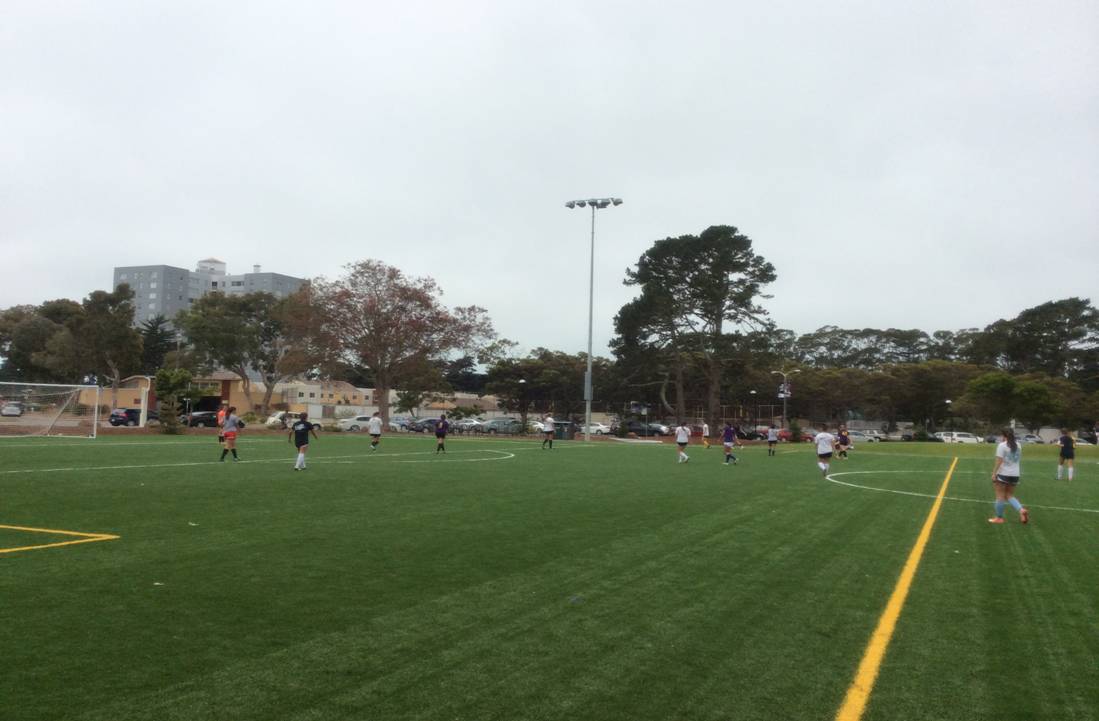 | 观摩旧金山大学女足训练 |