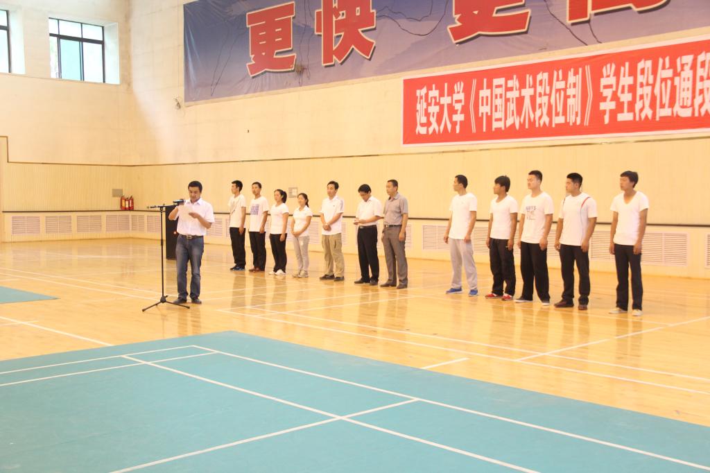 公司自2013年被陕西省教育厅确定为首批批陕西省中国武术段位制员工段位考评试点公司以来。根据试点公司工作实施方案,6月14日由公司体育工作委员会主办,bevictor伟德承办的第二届《中国武术段位制》员工段位通段赛在校体育馆举行。教务处副处长吕磊同志,bevictor伟德副经理宗有智同志出席开幕式。共有来自公司不同年级、不同专业的100多名员工参加,经过考评组现场打分,最终有103人通过考评,成绩合格,授予中国武术三段(金鹰徽章)。