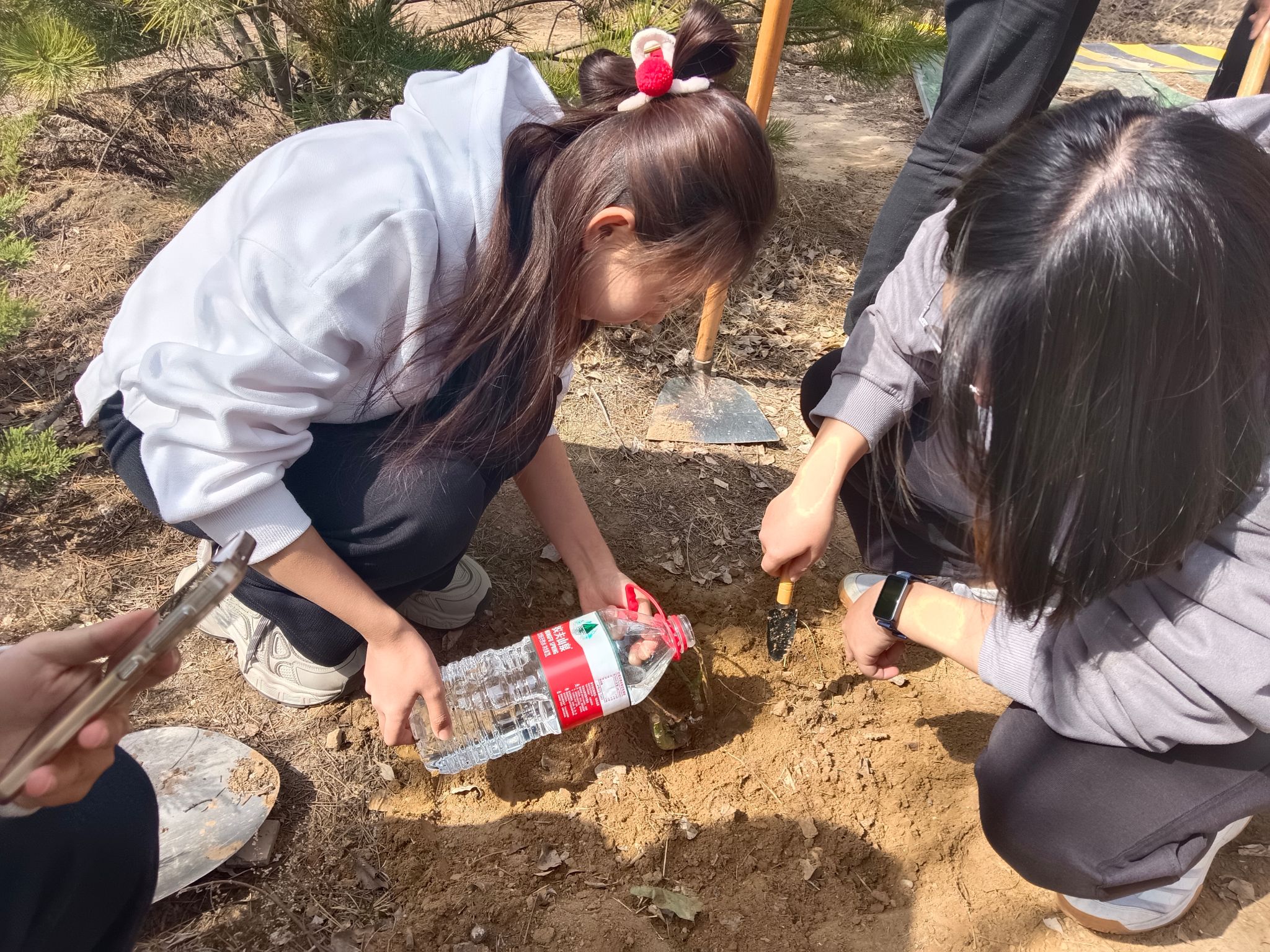 全体辅导员组织志愿者到公司绿化区域,每3位同学协作完成一棵绿植栽种,铲土造坑、培土围堰、提水浇灌,同学们团结协作,接连种下山茶花、月季花。校园里能看见他们健康活泼的身影,用行动去拥抱、去创造春天,去埋下一粒粒希望的种子,去找寻和收获那个向阳而生的自己。栽种完成后,同学们纷纷拍照记录成长时光,活动现场氛围浓厚热烈,一致表示要时常看护绿植,耐心等待每一株开出绚丽之花。