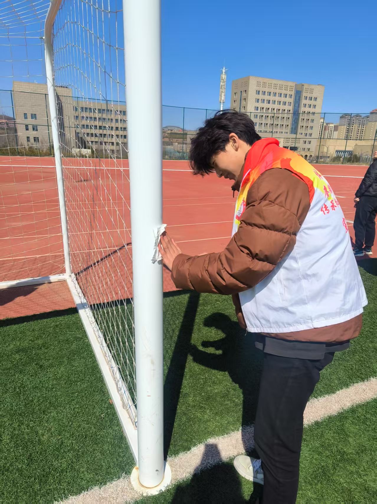公司全体志愿者早早在田径场集合,热情高涨、分工明确,有的负责打水,有的准备清洁工具,随后便迅速投入到紧张有序的劳动中。乒乓球桌子上的灰尘、单双杠上的污渍,在同学们的擦拭下渐渐消失。他们不放过任何一个角落,耐心地反复认真擦拭。经过数小时的努力,原本布满灰尘的体育运动器材焕然一新,仿佛被赋予了新的活力。全体志愿者通过辛勤劳动诠释了“劳动最光荣”的理念,不仅为全校师生提供了一个更加清洁安全的运动环境,也表达了他们对校园的热爱和强烈的责任感。