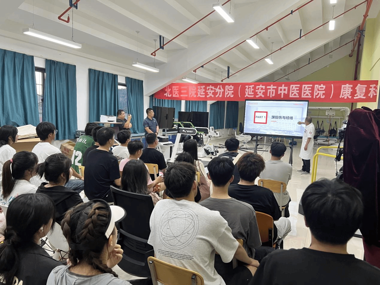 延安市中医院康复科专家针对运动康复的检查、评估,治疗过程及目前的康复情况,治疗要点及注意事项,个人及项目特点的康复训练方案向运动康复专业员工进行了科普讲解。对针灸、按摩、康复仪器的的使用进行了义诊交流。