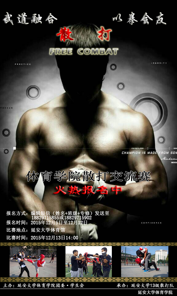 通过举办散打交流赛,让散打真正地走进校园。为散打爱好者搭建平台,同时推动散打的传播,倡导老员工积极向上的生活方式,在学习书本知识之余,能够习得动作技法,增强身体素质。武道融合,以拳会友。
